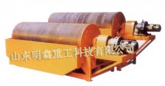 該類設備利用永磁磁系所產生的磁力,將礦漿中的磁性礦物吸引到圓筒表面上來,并隨著圓筒一起旋轉,待脫離磁場作用后在重力、(刮板)作用下,排出機外,而非磁性物料從尾礦口排除,完成分選作用。